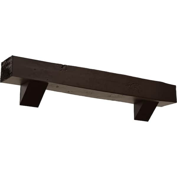 4 in. x 4 in. x 4 ft. Knotty Pine Faux Wood Fireplace Mantel Kit, Breckinridge Corbels, Natural Mahogany
