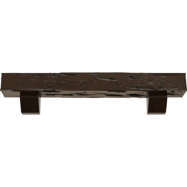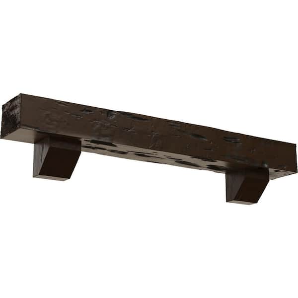 4 in. x 4 in. x 4 ft. Pecky Cypress Faux Wood Fireplace Mantel Kit, Ashford Corbels, Burnished Mahogany
