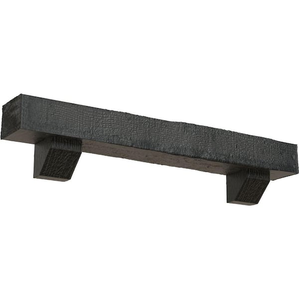 4 in. x 4 in. x 4 ft. Rough Sawn Faux Wood Fireplace Mantel Kit, Ashford Corbels, Aged Ash
