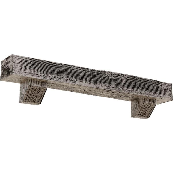 4 in. x 4 in. x 4 ft. Rough Sawn Faux Wood Fireplace Mantel Kit, Ashford Corbels, Burnished Pine
