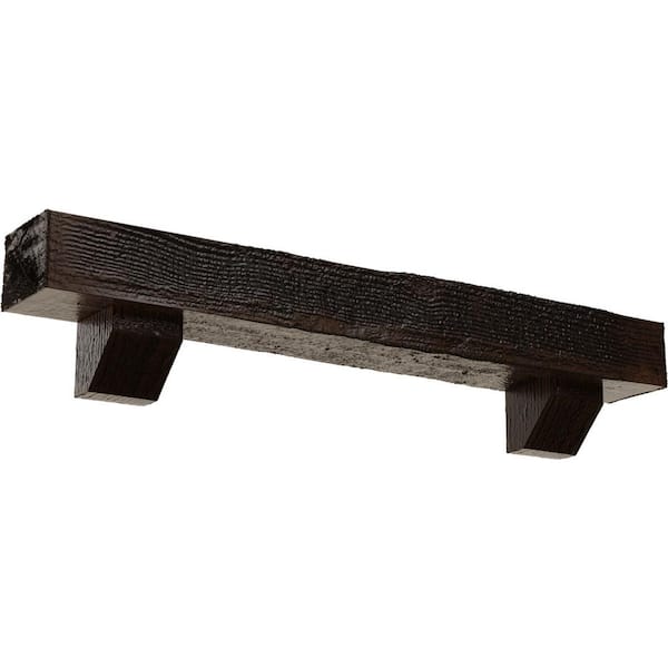 4 in. x 4 in. x 4 ft. Rough Sawn Faux Wood Fireplace Mantel Kit, Ashford Corbels, Premium Aged