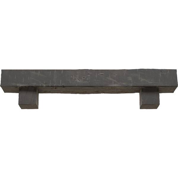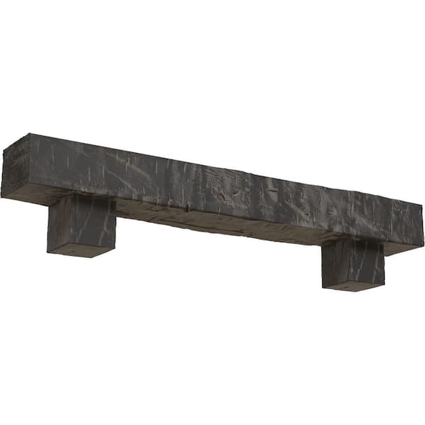 4 in. x 4 in. x 5 ft. Hand Hewn Faux Wood Fireplace Mantel Kit, Alamo Corbels, Aged Cedar
