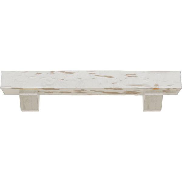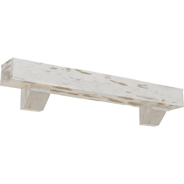 4 in. x 4 in. x 5 ft. Pecky Cypress Faux Wood Fireplace Mantel Kit, Ashford Corbels, Factory Prepped Ready to Paint