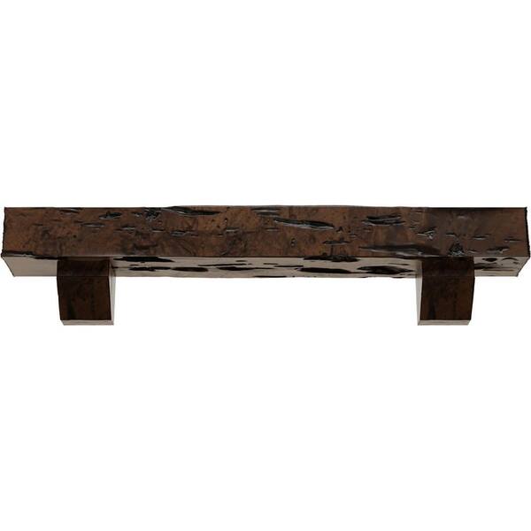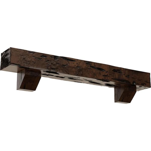 4 in. x 4 in. x 5 ft. Pecky Cypress Faux Wood Fireplace Mantel Kit, Ashford Corbels, Premium Aged