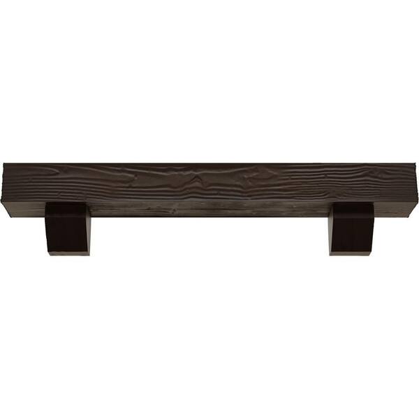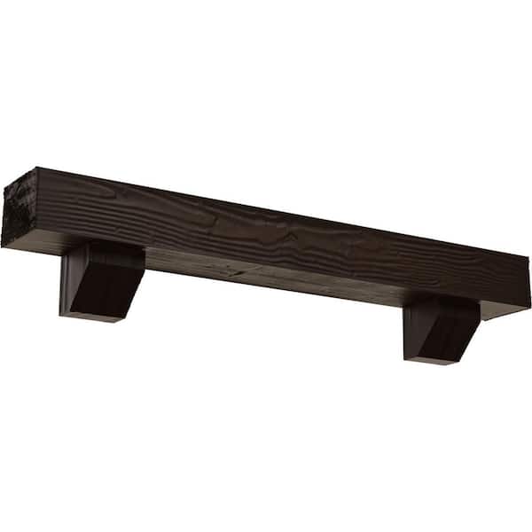 4 in. x 4 in. x 5 ft. Sandblasted Faux Wood Fireplace Mantel Kit, Ashford Corbels, Natural Mahogany