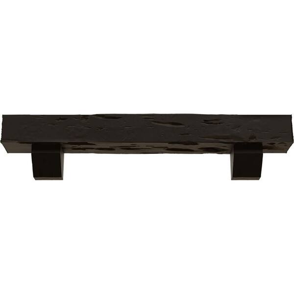 4 in. x 4 in. x 7 ft. Pecky Cypress Faux Wood Fireplace Mantel Kit, Ashford Corbels, Natural Ash