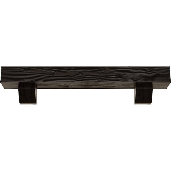 4 in. x 4 in. x 7 ft. Sandblasted Faux Wood Fireplace Mantel Kit, Ashford Corbels, Premium Walnut