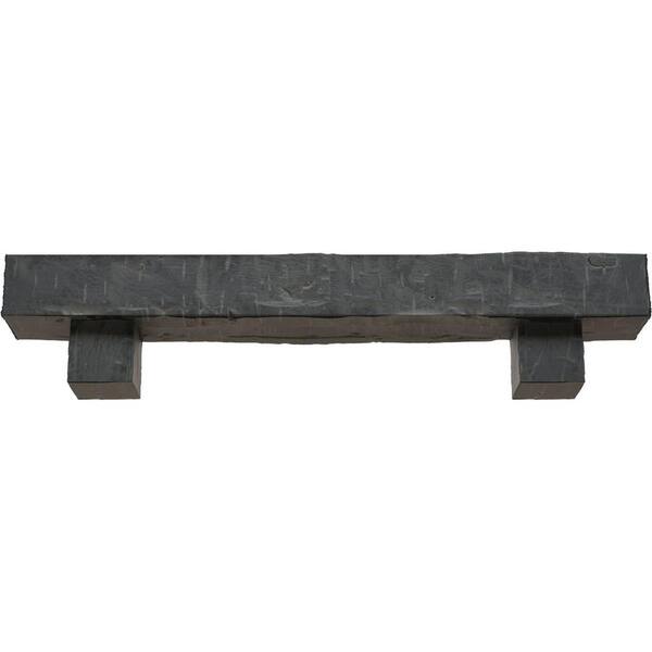4 in. x 6 in. x 3 ft. Hand Hewn Faux Wood Fireplace Mantel Kit, Alamo Corbels, Aged Ash