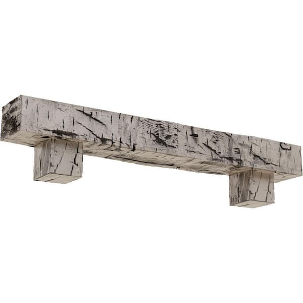 4 in. x 6 in. x 4 ft. Hand Hewn Faux Wood Fireplace Mantel Kit with Alamo Corbels, Burnished Pine