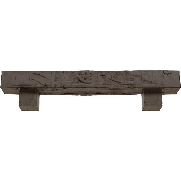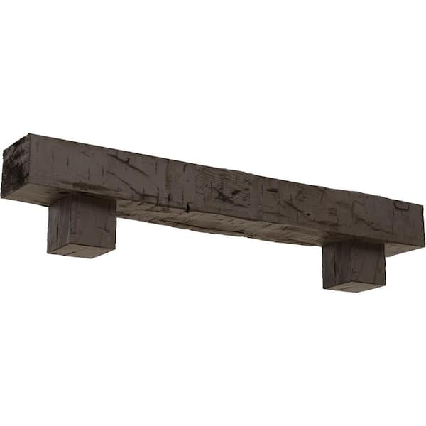 4 in. x 6 in. x 4 ft. Hand Hewn Faux Wood Fireplace Mantel Kit with Alamo Corbels, Natural Honey Dew