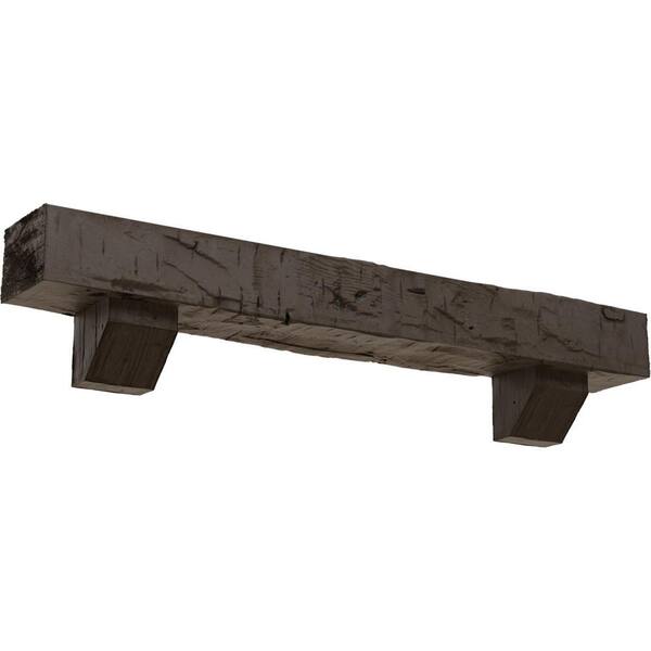 4 in. x 6 in. x 5 ft. Hand Hewn Faux Wood Fireplace Mantel Kit, Ashford Corbels, Natural Honey Dew