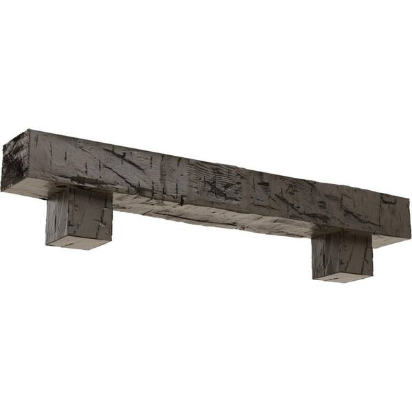 4 in. x 6 in. x 5 ft. Hand Hewn Faux Wood Fireplace Mantel Kit with Alamo Corbels, Burnished Honey Dew