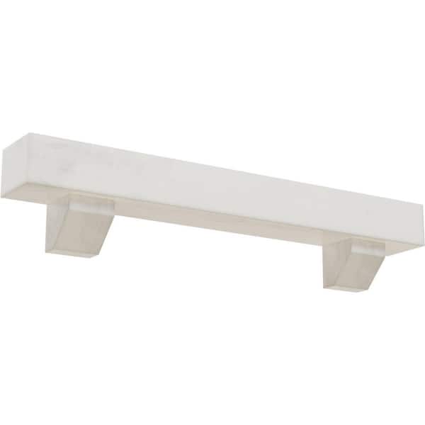 4 in. x 6 in. x 5 ft. Rustic Smooth Faux Wood Fireplace Mantel Kit, Ashford Corbels, Factory Prepped Ready to Paint
