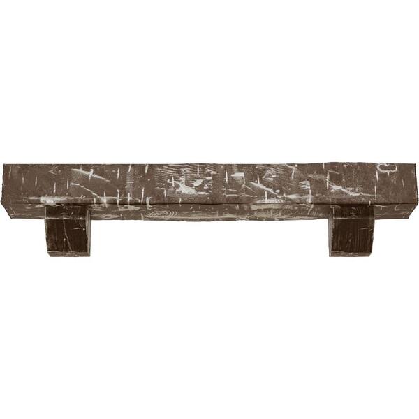4 in. x 6 in. x 6 ft. Hand Hewn Faux Wood Fireplace Mantel Kit, Ashford Corbels, Vintage Mahogany