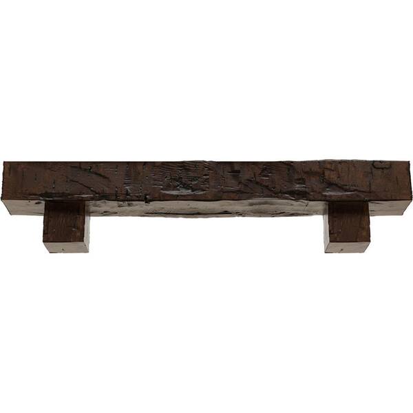 4 in. x 6 in. x 6 ft. Hand Hewn Faux Wood Fireplace Mantel Kit with Alamo Corbels, Premium Aged