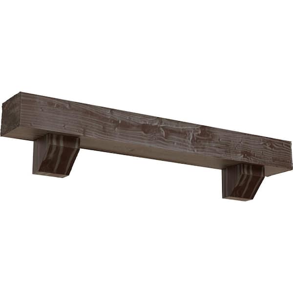 4 in. x 6 in. x 6 ft. Sandblasted Faux Wood Beam Fireplace Mantel Kit, Ashford Corbels in Aged Pecan