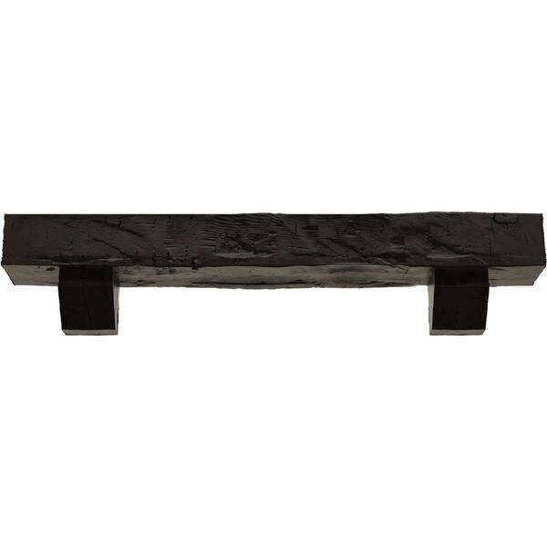 4 in. x 6 in. x 7 ft. Hand Hewn Faux Wood Fireplace Mantel Kit with Ashford Corbels, Premium Walnut