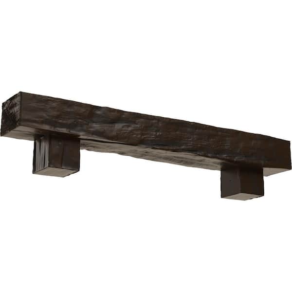 4 in. x 6 in. x 7 ft. Riverwood Faux Wood Fireplace Mantel Kit, Alamo Corbels, Burnished Mahogany