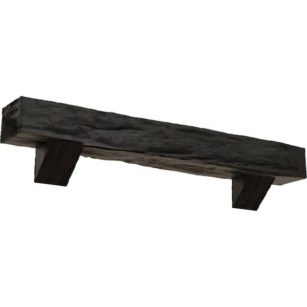 4 in. x 8 in. x 3 ft. Riverwood Faux Wood Fireplace Mantel Kit, Breckinridge Corbels, Burnished Cedar