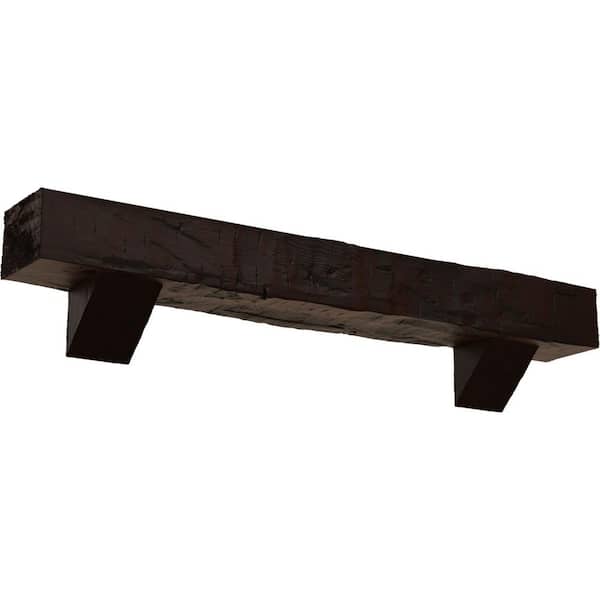 4 in. x 8 in. x 4 ft. Hand Hewn Faux Wood Fireplace Mantel Kit, Breckinridge Corbels, Premium Hickory
