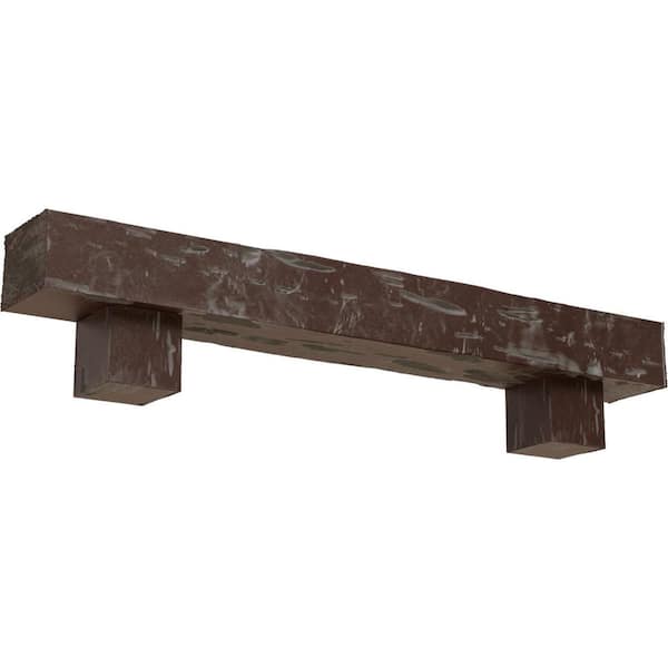 4 in. x 8 in. x 4 ft. Pecky Cypress Faux Wood Fireplace Mantel Kit with Alamo Corbels, Aged Pecan