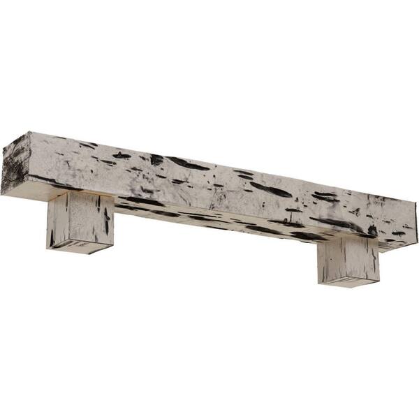 4 in. x 8 in. x 7 ft. Pecky Cypress Faux Wood Fireplace Mantel Kit, Alamo Corbels, Burnished Pine