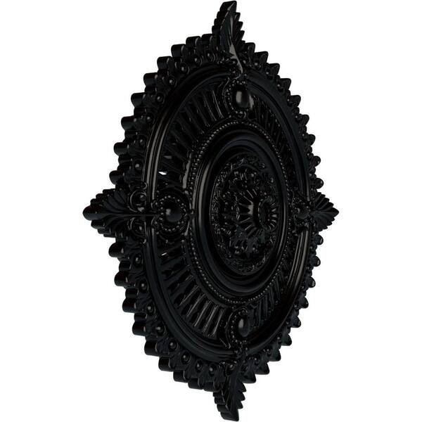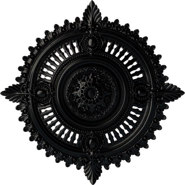 4" x 29-1/8" x 29-1/8" Polyurethane Haylynn Ceiling Medallion, Hand-Painted Jet Black