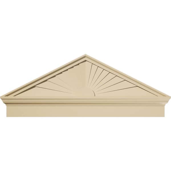 46 in. W x 18-3/8 in. H x 2-3/4 in. P Pitch 6/12 Peaked Cap Sunburst Signature Urethane Combination Pediment Primed Tan