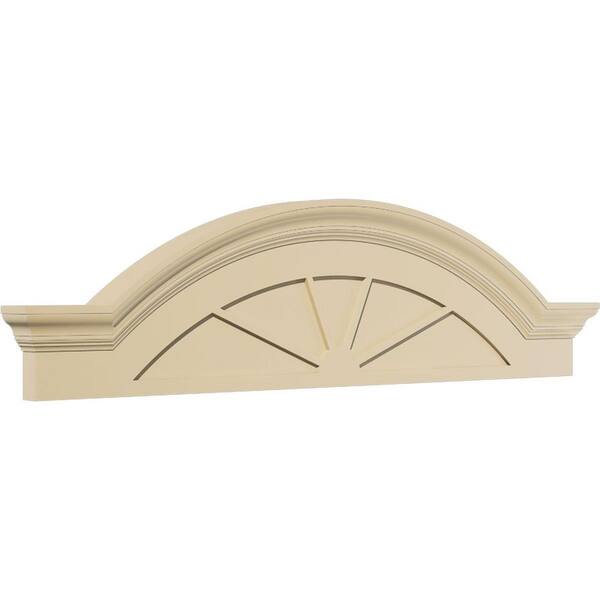 48 in. W x 13 in. H x 2-1/2 in. P Segment Arch W/Flankers 4 Spoke Signature Urethane Pediment, Primed Tan