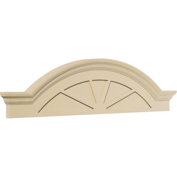 52 in. W x 14 in. H x 2-1/2 in. P Segment Arch W/Flankers 4 Spoke Signature Urethane Pediment, Primed Tan
