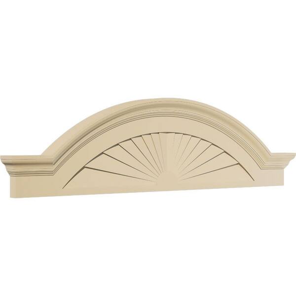 54-in. W x 14-1/2-in. H x 2-1/2-in. P Segment Arch W/Flankers Sunburst Signature Urethane Pediment, Primed Tan