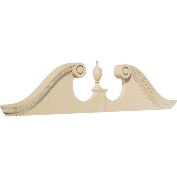 58-in. W x 14-1/2-in. H x 2-3/4-in. P Rams Head Signature Urethane Pediment (Urn Ships Unattached in Box), Primed Tan