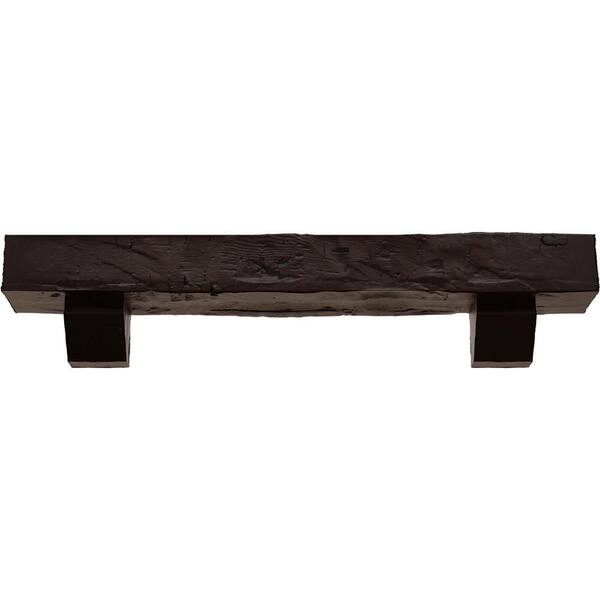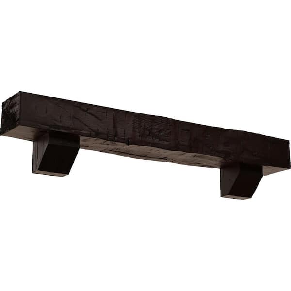 6 in. x 10 in. x 3 ft. Hand Hewn Faux Wood Fireplace Mantel Kit, Ashford Corbels, Premium Mahogany