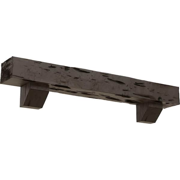6 in. x 10 in. x 3 ft. Pecky Cypress Faux Wood Fireplace Mantel Kit, Ashford Corbels, Natural Honey Dew