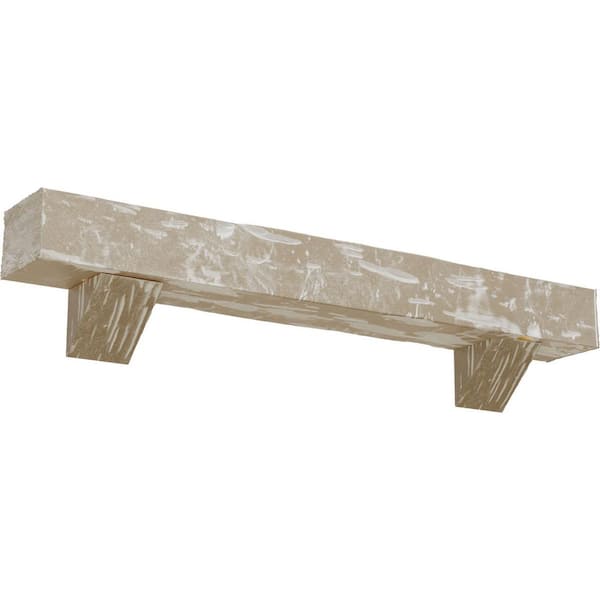 6 in. x 10 in. x 3 ft. Pecky Cypress Faux Wood Fireplace Mantel Kit, Breckinridge Corbels, Whitewashed
