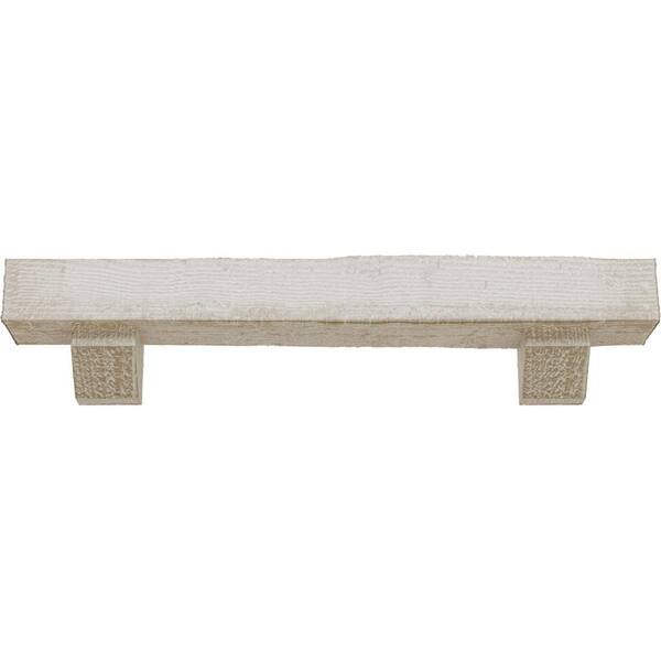 6 in. x 10 in. x 5 ft. Rough Sawn Faux Wood Fireplace Mantel Kit, Ashford Corbels, Whitewashed