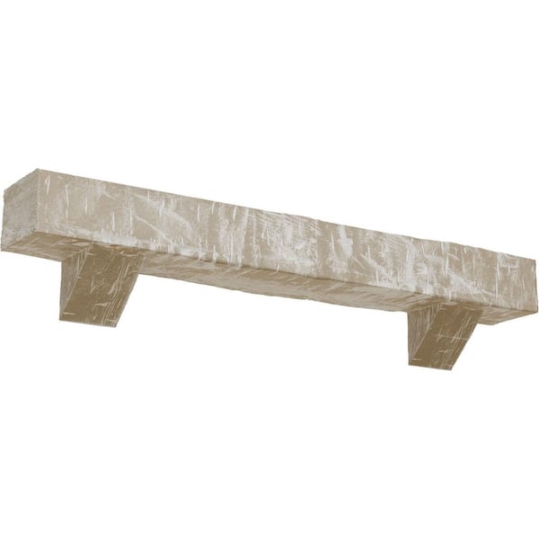 6 in. x 10 in. x 7 ft. Hand Hewn Faux Wood Fireplace Mantel Kit, Breckinridge Corbels, Whitewashed