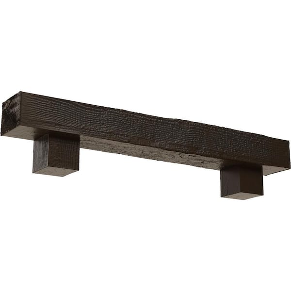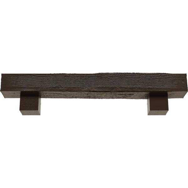 6 in. x 6 in. x 3 ft. Rough Sawn Faux Wood Fireplace Mantel Kit, Alamo Corbels, Burnished Mahogany