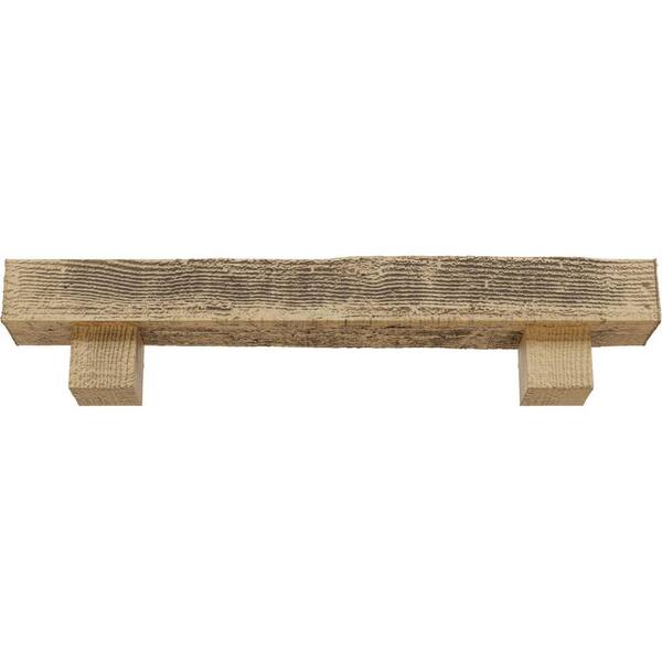 6 in. x 6 in. x 3 ft. Rough Sawn Faux Wood Fireplace Mantel Kit, Alamo Corbels, Natural Pine
