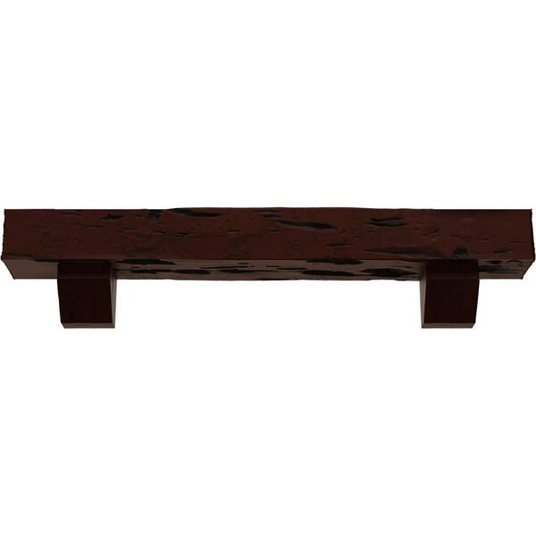 6 in. x 6 in. x 4 ft. Pecky Cypress Faux Wood Fireplace Mantel Kit, Ashford Corbels, Natural Pecan