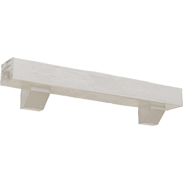 6 in. x 6 in. x 4 ft. Rough Cedar Faux Wood Fireplace Mantel Kit, Ashford Corbels, Factory Prepped Ready to Paint