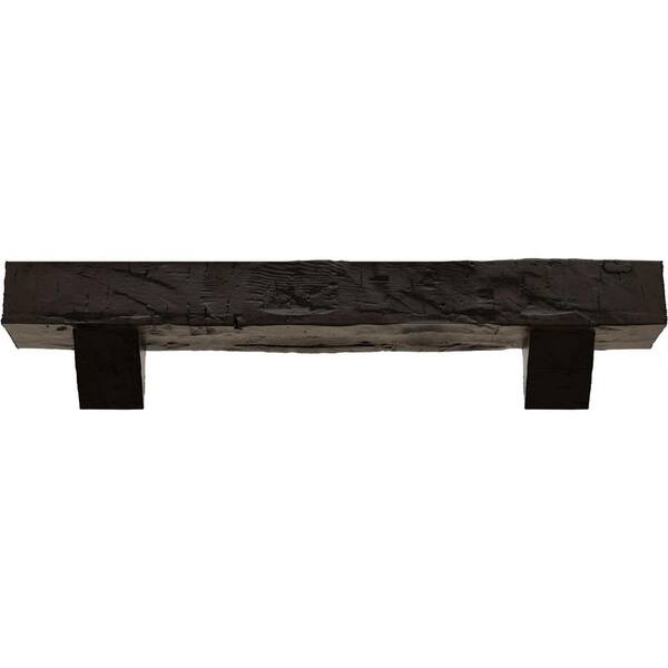 6 in. x 6 in. x 5 ft. Hand Hewn Faux Wood Fireplace Mantel Kit, Breckinridge Corbels, Premium Walnut