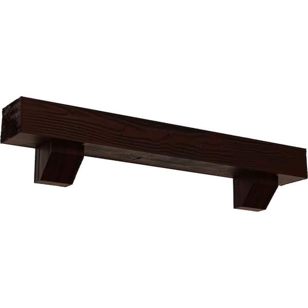 6 in. x 6 in. x 5 ft. Sandblasted Faux Wood Fireplace Mantel Kit with Ashford Corbels, Natural Pecan