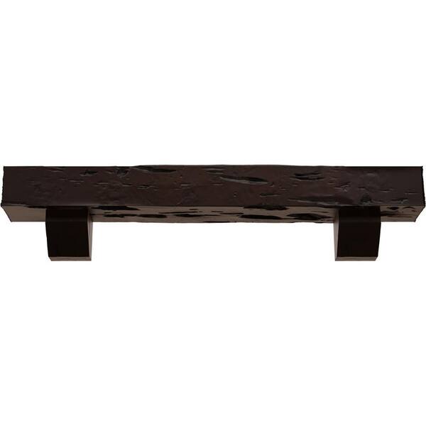 6 in. x 6 in. x 6 ft. Pecky Cypress Faux Wood Fireplace Mantel Kit, Ashford Corbels, Premium Mahogany