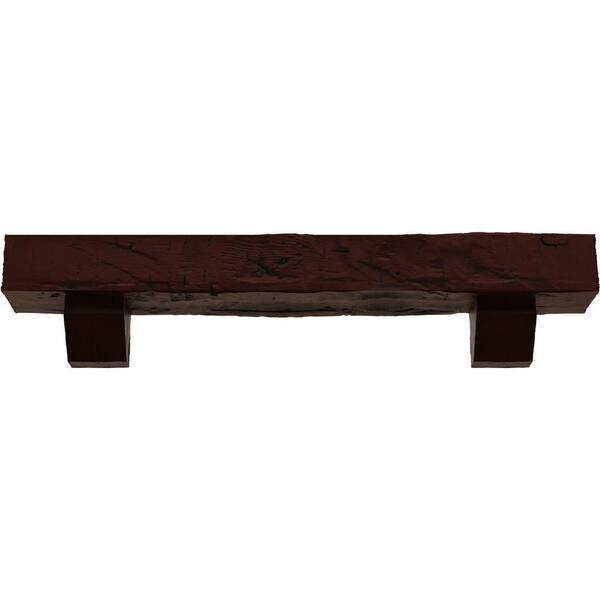 6 in. x 6 in. x 7 ft. Hand Hewn Faux Wood Fireplace Mantel Kit with Ashford Corbels, Natural Pecan