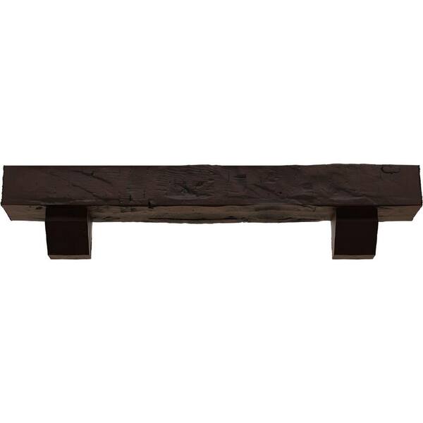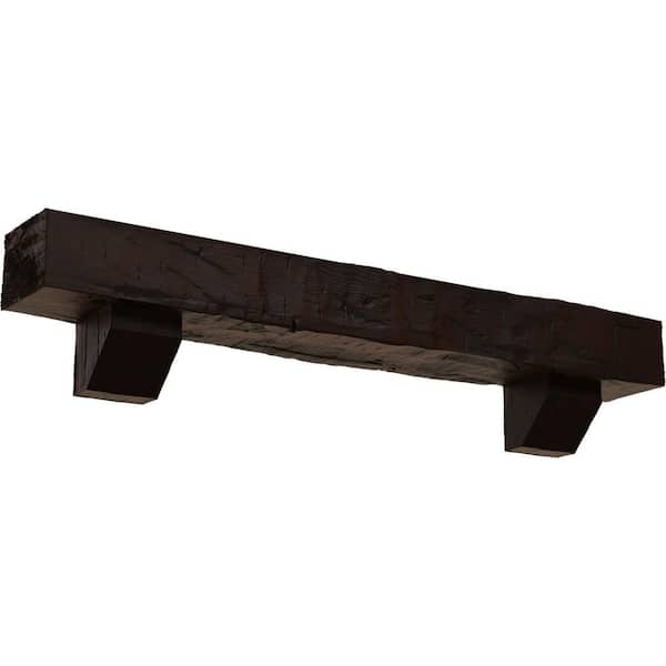 6 in. x 6 in. x 7 ft. Hand Hewn Faux Wood Fireplace Mantel Kit with Ashford Corbels, Premium Hickory