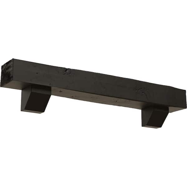 6 in. x 6 in. x 7 ft. Knotty Pine Faux Wood Fireplace Mantel Kit, Ashford Corbels, Burnished Cedar