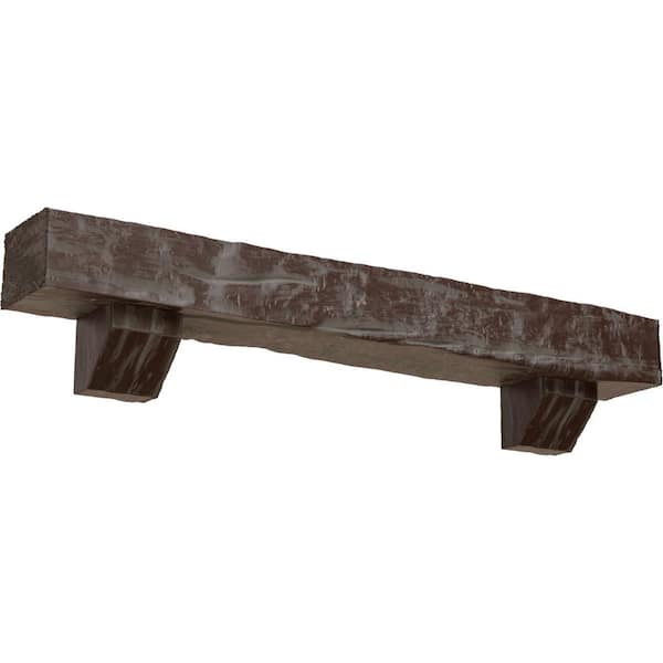 6 in. x 6 in. x 7 ft. Riverwood Faux Wood Fireplace Mantel Kit, Ashford Corbels, Aged Pecan
