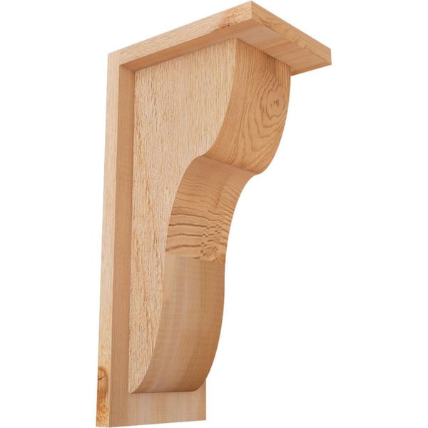 6 in. x 8 in. x 16 in. Western Red Cedar Carmel Rough Sawn Corbel with Backplate