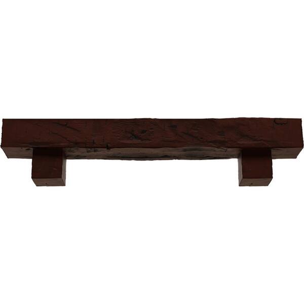 6 in. x 8 in. x 3 ft. Hand Hewn Faux Wood Fireplace Mantel Kit, Alamo Corbels, Natural Pecan